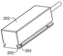 第二實(shí)施例,如圖3至5所示,本實(shí)施例與第一實(shí)施例不同的是:在凹槽203內(nèi)部設(shè)有槽口204,固定片22包括連接部221和設(shè)于連接部221兩側(cè)的彎鉤部222,彎鉤部222 的邊緣設(shè)有用于卡入槽口204的定位部224。當(dāng)螺釘穿過腰圓孔123和螺紋孔234時(shí),定位部224卡于槽口204內(nèi)并壓緊,將鋁管202和支撐部232固定聯(lián)接。