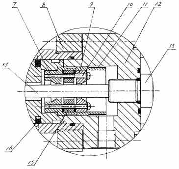 缸底12的外端安裝有磁致伸縮位移傳感器13,該線性傳感器與缸底12間通過密封圈相封接,其前端的波導(dǎo)桿17依次穿過缸底12的螺孔、壓蓋9的中心孔、磁環(huán)15和緩沖磁鐵盒7底部的中心孔后,插入活塞桿2的中心孔內(nèi)。