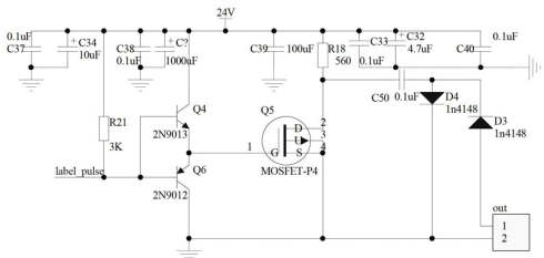 激勵脈沖由NPN和PNP三極管組成的所述開關(guān)電路控制mos管,從而控制聚丙烯電容的充放電,放電時產(chǎn)生的電荷(經(jīng)由高速開關(guān)二極管)轉(zhuǎn)移到波導(dǎo)絲上。