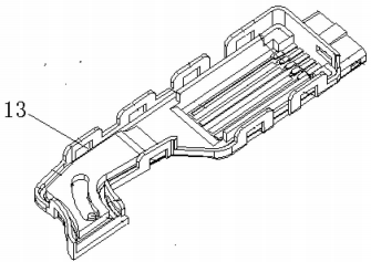 本發(fā)明中,小復(fù)位彈簧放置在大復(fù)位彈簧內(nèi),小復(fù)位彈簧與大復(fù)位彈簧在設(shè)計(jì)時(shí),大復(fù)位彈簧的復(fù)位力是小復(fù)位彈簧的2. 5倍關(guān)系,兩個(gè)彈簧安裝在傳動(dòng)套筒內(nèi)。組裝好的傳動(dòng)套筒滑動(dòng)安裝在踏板底座內(nèi)腔中。三個(gè)傳動(dòng)連桿依次鉸接構(gòu)成傳動(dòng)連桿組,傳動(dòng)連桿組始端鉸接在踏板臂底部,末端鉸接在傳動(dòng)套筒上。踏板臂前臂端設(shè)置有滑道和自卡機(jī)構(gòu),且踏板臂通過(guò)其滑道和自卡機(jī)構(gòu)自鎖在踏板底座前端。接線端子直接注塑在傳感器外殼端部;防水橡膠通過(guò)二次注塑,注塑在傳感器外殼殼內(nèi)壁上;基片直接安裝在傳感器外殼殼內(nèi)壁上,電刷安裝在傳動(dòng)套筒朝向傳感器外殼一側(cè)的筒壁上。