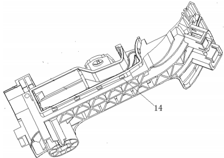 本發(fā)明中的直線位移傳感器電子油門加速踏板,可適用于任何電子油門踏板的汽車,尤其適用于對(duì)精度要求高的汽車,可以更加準(zhǔn)確的反應(yīng)駕駛員意圖,使傳動(dòng)精度更高,誤差更小,而且本發(fā)明組裝方便,只需手工組裝即可快速組裝完成,無(wú)需螺絲鎖附,內(nèi)部各部件通過(guò)自身自卡和自鎖機(jī)構(gòu)緊密連接,即使在劇烈震動(dòng)情況下也不會(huì)松動(dòng)。