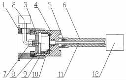 其中,1、端部卡箍2、數(shù)據(jù)采集儀3、密封環(huán)4、中心密封環(huán)5、位移傳感器磁環(huán)6、軸向套筒7、液壓管接頭及膠管8、密封法蘭9、位移傳感器測(cè)試線10、螺釘11、位移傳感器磁桿12、高壓水下運(yùn)動(dòng)件13、卡箍連接螺釘