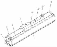 其特征在于:滑塊7的前端設(shè)有一插槽,牽引桿的后端插設(shè)于滑塊前端的插槽內(nèi)并固定。牽引桿由一直桿球頭關(guān)節(jié)軸承81、一連接拉桿82、一桿端關(guān)節(jié)軸承83從后至前依次串接而成。測量電路為現(xiàn)有技術(shù)。