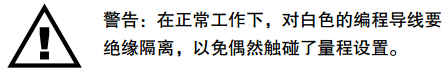 5. 將編程導(dǎo)線(白色)插到電源公共端達(dá)4秒鐘,再拔出1秒鐘。在5秒鐘內(nèi),編程導(dǎo)線與電源+VDC形成短路,這樣就完成了量程編程過程。