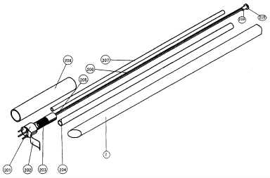 如圖3所示,探桿內部裝有波導絲(205),激勵導線(206),骨架(201),線圈(203),屏蔽套管(208),波導絲)與激勵導線在探桿距離測量主體遠端的固定塊(210)上連接,并與測量電路(11,17)電氣連接,線圈)繞制在骨架上,通過軟帶(202)與測量電路電氣連接,骨架上具有屏蔽套管,測量主體外蓋上裝有一顯示裝置(4),顯示裝置與測量電路電氣連接,用于顯示測量數(shù)值。