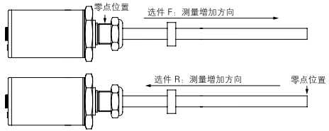 位移傳感器可以組態(tài)位移或速度的增加、減少。選項F(測量向前的方向)在磁環(huán)從傳感器的桿頭移動到桿稍端時,將會增加計數(shù)。選項R將完全相反。零位將位于安裝螺紋上。在這個范圍,實際上不可能探測到磁信號。如果磁致伸縮位移傳感器是選擇反向測量,零點將在傳感器遠處的桿稍端處,在這位置也不能探測到磁信號。如果選擇速度時,這時傳感器輸出的將是速度,而不是位移。