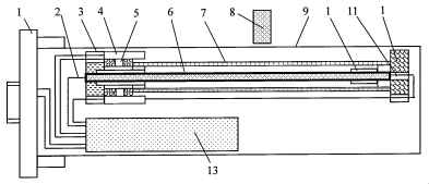 圖1是低噪聲磁致伸縮位移傳感器的結(jié)構(gòu)示意圖;