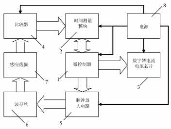 圖1為數(shù)字磁致伸縮位移傳感器電路的結(jié)構(gòu)框圖。