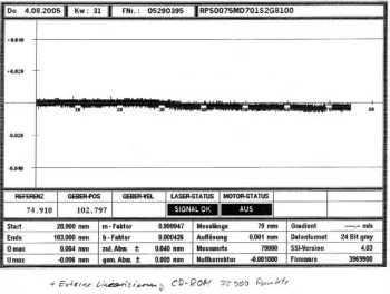 線性化處理后的RH系列磁致伸縮位移傳感器的線性精度測(cè)量記錄表明:分辨率和線性度均達(dá)到客戶要求位移檢測(cè)精度的技術(shù)指標(biāo)。