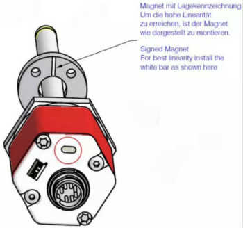 MTS傳感器RH系列磁致伸縮位移傳感器:SSI信號(hào)輸出接口;具備0.5 um分辨率。這種規(guī)格的位移傳感器是經(jīng)過(guò)線性化處理的產(chǎn)品,使用標(biāo)記磁鐵,在設(shè)備安裝中要符合如下技術(shù)要求:標(biāo)記磁鐵的白色標(biāo)記線需要和后端蓋指示燈的徑向方向一致。