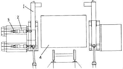 圖1所示,基于磁致伸縮位移傳感器控制的翻車(chē)機(jī)靠車(chē)板,包括翻車(chē)機(jī)靠車(chē)板1,它與四個(gè)控制油缸2絞接。為了保證翻車(chē)機(jī)靠車(chē)板1完全靠緊在不同外形的車(chē)皮4上,且在所述的每一油缸杠桿(圖中未標(biāo)注)內(nèi)安裝MTS磁致伸縮位移傳感器3,用來(lái)檢測(cè)油缸的位移情況,這樣就可以將位移信號(hào)提供給液壓控制系統(tǒng)中的電液換向閥、調(diào)速閥來(lái)分別控制調(diào)節(jié)每個(gè)油缸的伸出縮回的量,使靠車(chē)板同歩推出,且可以與車(chē)皮完全靠實(shí)。從而減小負(fù)載沖擊,有利于延長(zhǎng) 設(shè)備及車(chē)皮的使用壽命。